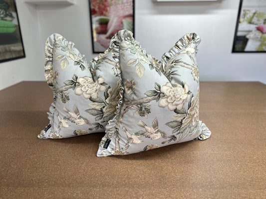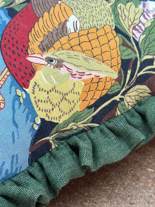 Rockbird Cushion | Printed Linen with Stonewashed Linen Ruffles