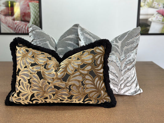 Maple Leaf Lumbar Cushion | Catherine Martin Velvet with Double Brush Fringe