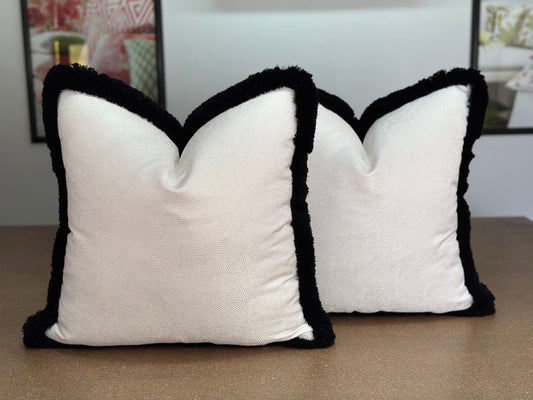 Spotted Cushion | Jim Thompson White Sateen Fabric with Black Fringe