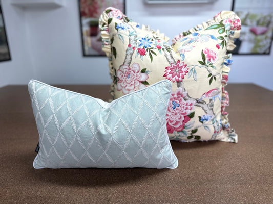 Avalon Embroidered Lumbar Cushion | Floral Silk Design