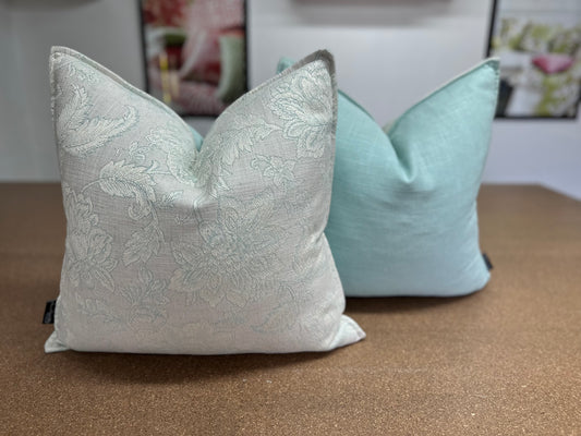 Amida Cushion | Peter Dunham Green Woven Fabric with Roll Over Edge