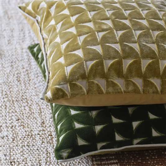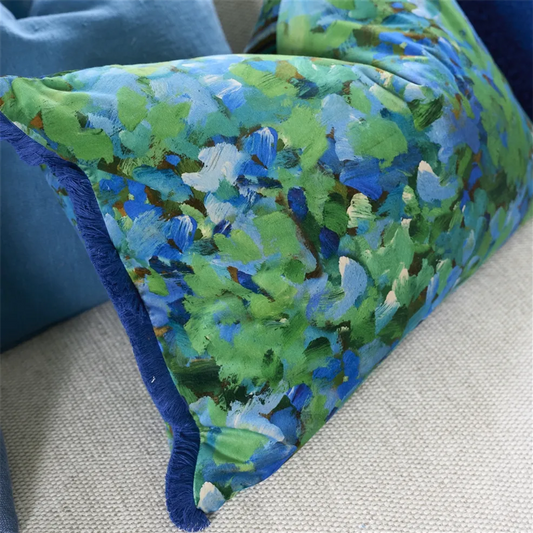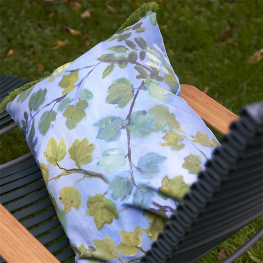 Giardino Segreto Outdoor Cushion | Leafy Print with Grass Green Fringe