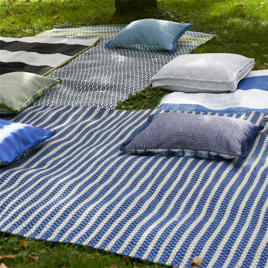 Muara Outdoor Cushion | Dynamic Striped Weave in Cobalt Blue