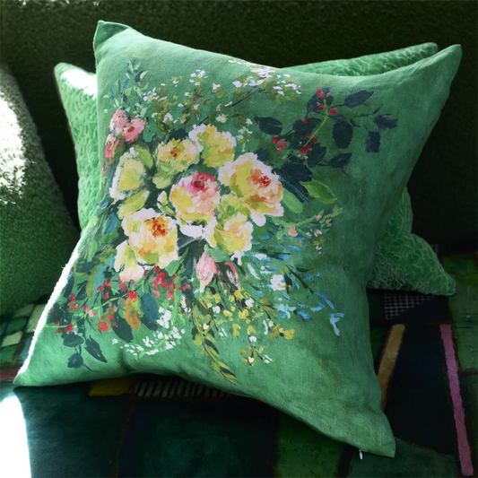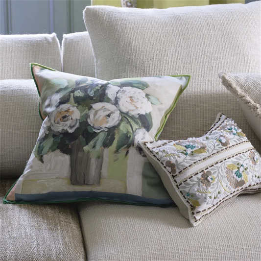 Celadon Vase Cushion | Painterly Vase of Garden Flowers