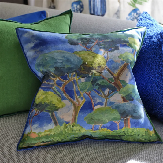 Matsu Cobalt Cushion | Abstract Oriental Pine Tree Print