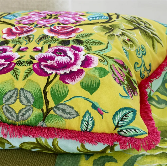 Chinoiserie Outdoor Cushion | Floral Print with Fringe