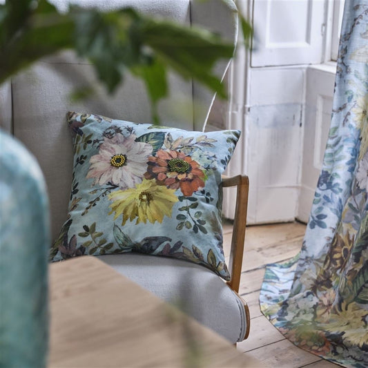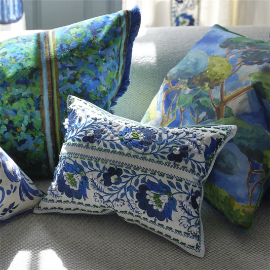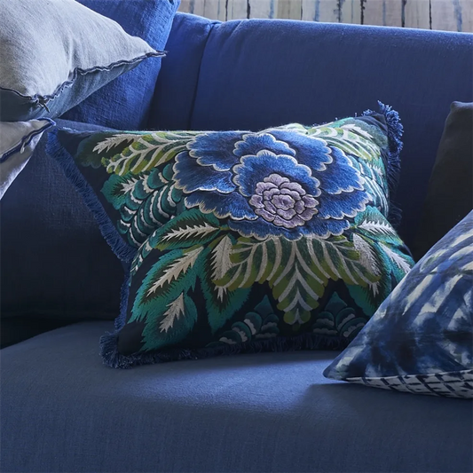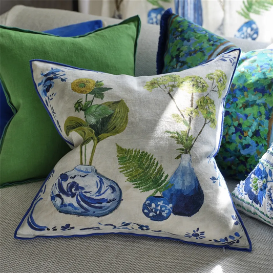 Kawana Linen Cushion | Illustrative Floral Design in Cobalt Blue