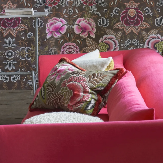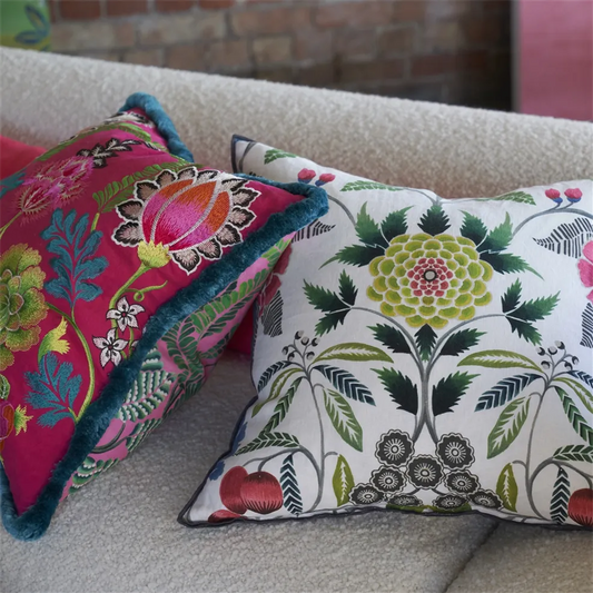 Enamel Flower Cushion | Embroidered Graphic Floral Bands