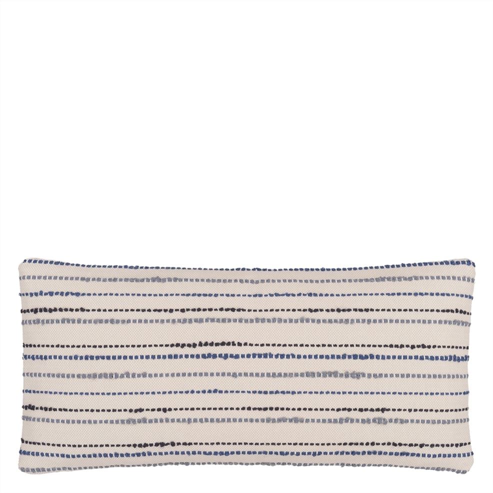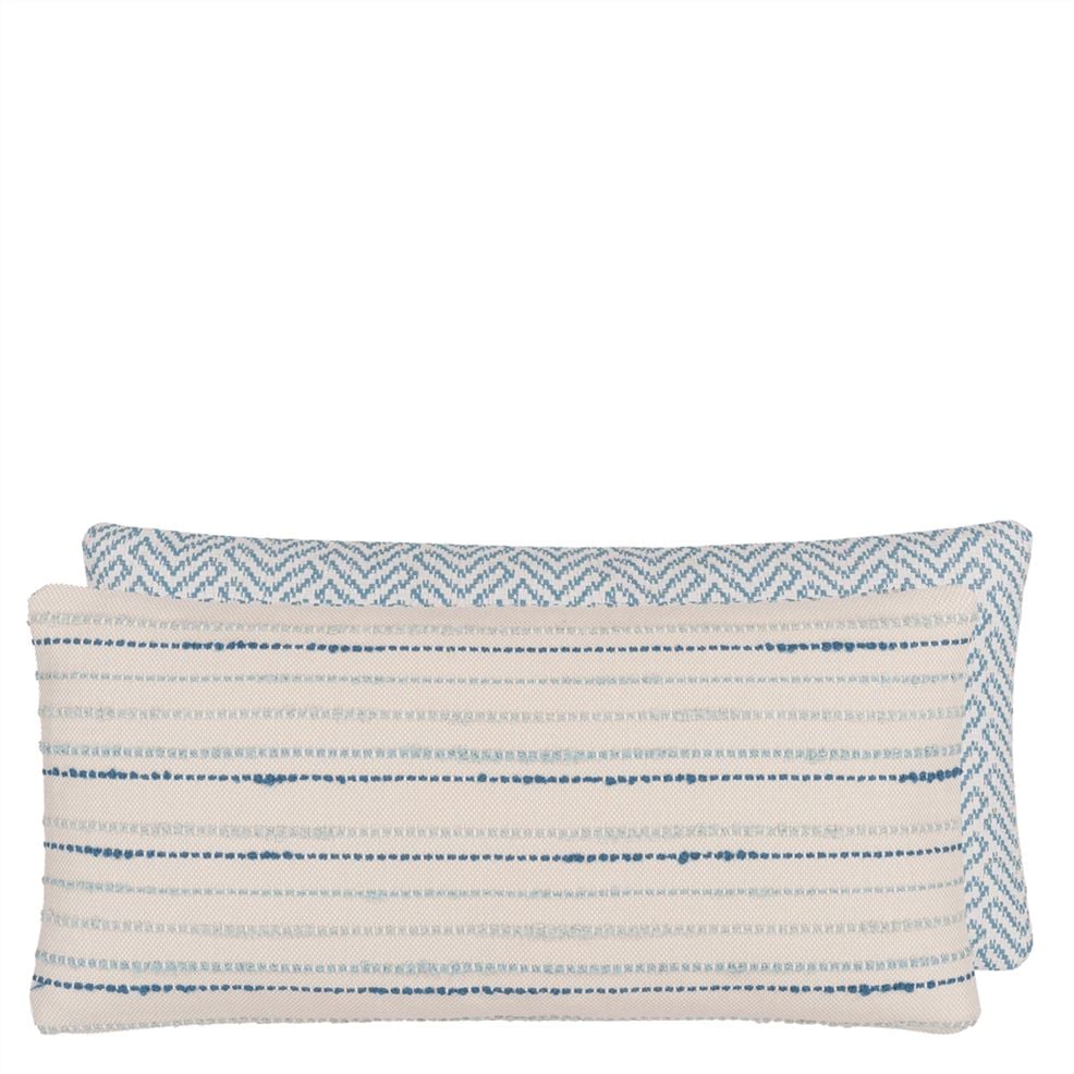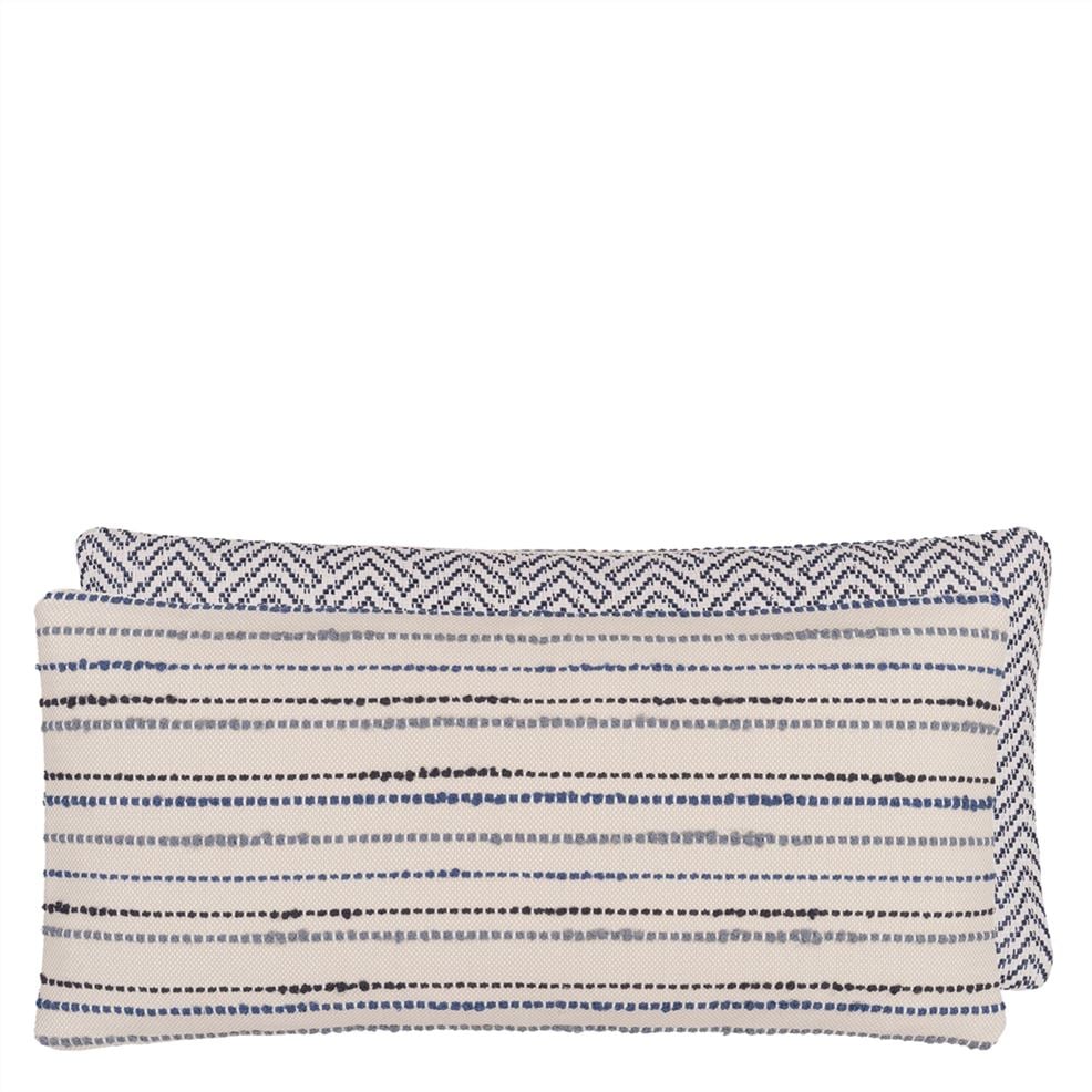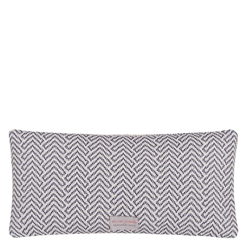 This new outdoor cushion by William Yeoward features a chevron weave front reversing to a textural woven semi plain. In indigo blue tones this rectangular outdoor/indoor cushion is also machine washable.